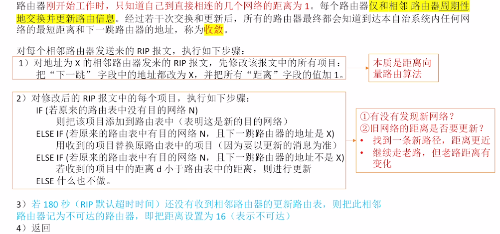 RIP限制了网络的规模,它能使用的最大距离为15(16表示不可达)