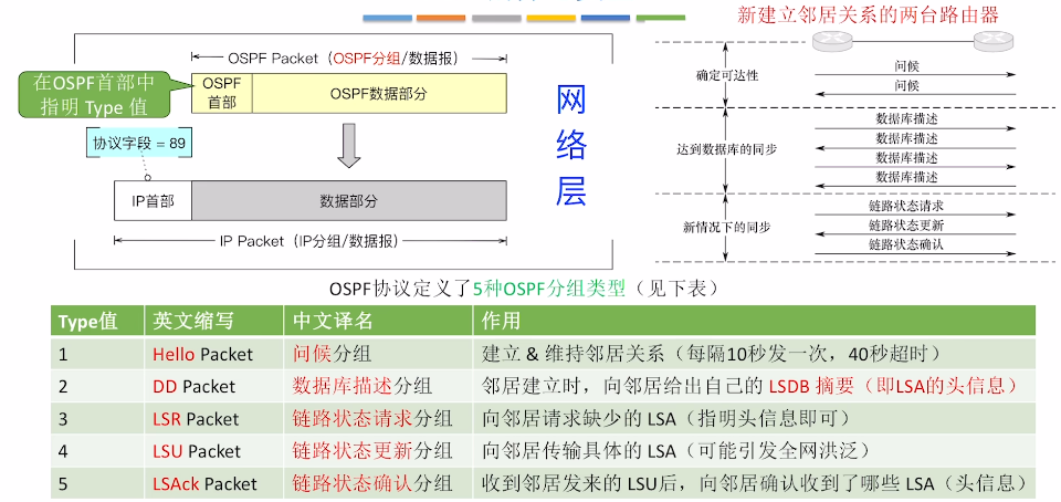OSPF协议属于网络层,OSPF使用IP协议提供的服务,IP首部协议字段 = 89